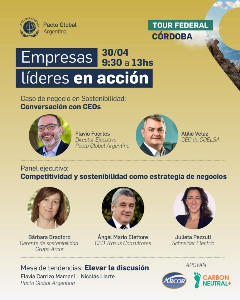 Pacto Global de Naciones Unidas —la mayor red de sostenibilidad corporativa del país y del mundo— vuelve a Córdoba como parte de su Tour Federal “Empresas Líderes en Acción”, una iniciativa que busca acercar estas discusiones a las distintas regiones de la Argentina y fortalecer una comunidad empresaria con mirada de largo plazo.