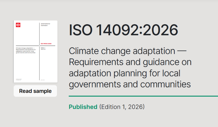 La Organización Internacional de Normalización (ISO) anunció la publicación de la nueva norma ISO 14092:2026 — Adaptación al cambio climático — Requisitos y orientación sobre la planificación de la adaptación para gobiernos locales y comunidades, un estándar que busca convertir la urgencia climática en planes concretos y ejecutables a nivel territorial.
