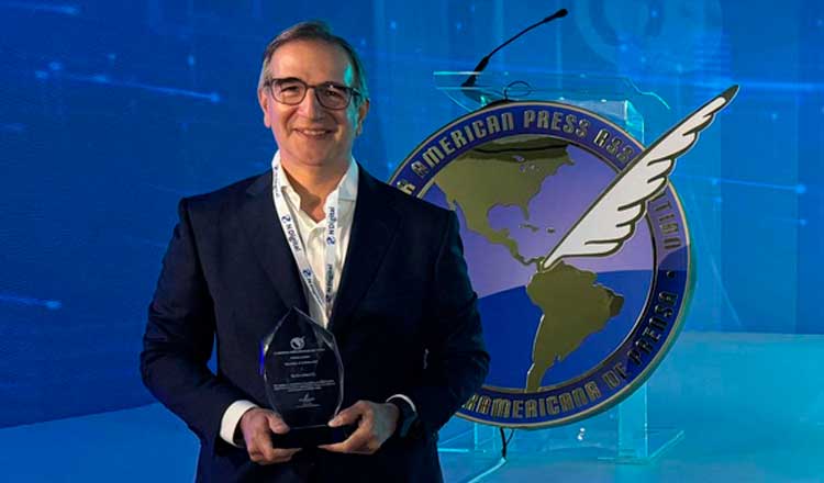 Foto: Pedro Lopez Matheu, Director de Comunicaciones Externas, Sustentabilidad y Medios de Telecom Argentina; recibiendo recientemente una distinción de la Sociedad Interamericana de Prensa (SIP).