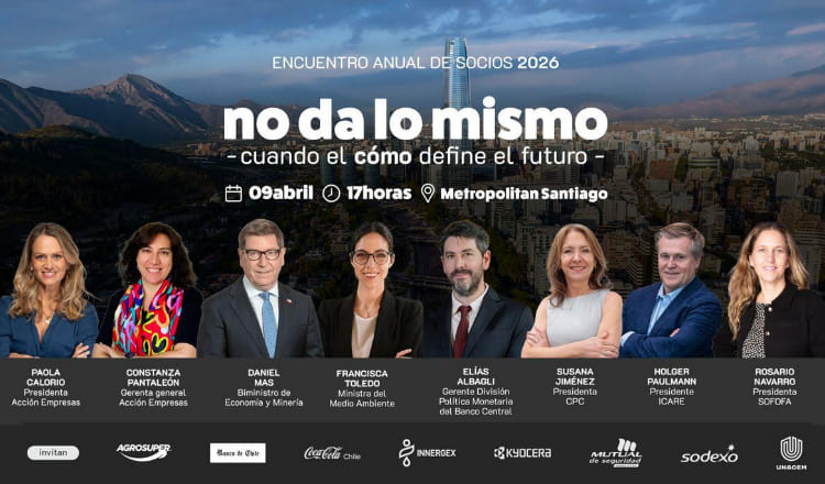Acción Empresas realizará una nueva edición de su Encuentro Anual de Socios, instancia que este año pondrá en el centro del debate el crecimiento económico de Chile y el rol de la sostenibilidad como condición habilitante para recuperar dinamismo, inversión y confianza. Bajo el concepto “no da lo mismo – cuando el cómo define el futuro”, el encuentro reunirá a cerca de 300 líderes empresariales —cuyas compañías representan alrededor del 15% del PIB nacional— para abordar las decisiones estratégicas que marcarán el próximo ciclo económico del país.